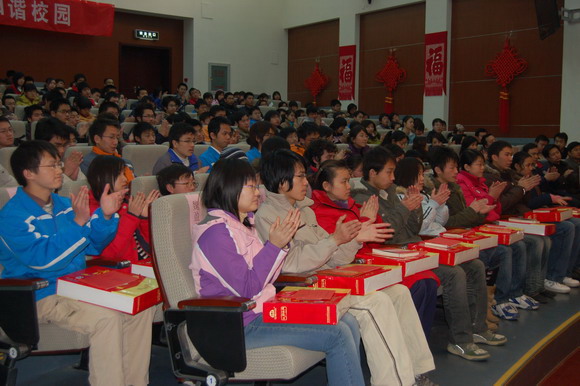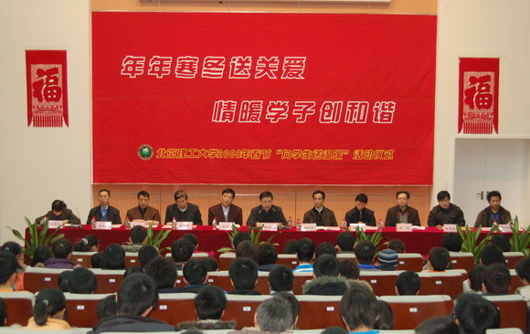 2008年1月25日,开云kaiyun官网良乡校区综合教学楼综合演艺厅内洋溢着阵阵欢声和融融暖意,300名2007级家庭经济困难学生代表济济一堂,参加了学校组织的以“年年寒冬送关爱 情暖学子创和谐”为主题的2008年春节“向学生送温暖”活动。