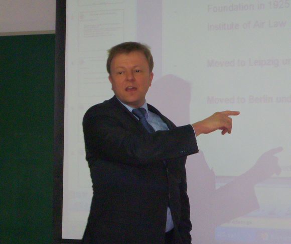 2008年3月11日,应开云kaiyun官网空间法研究所的邀请,德国科隆大学空间法研究所所长Stephan Hobe教授在三号教学楼110室为大家带来了一场题为“国际空间站法律问题研究”的精彩讲座。讲座吸引了大批法律系的研究生、本科生、二学位的同学。人文社会科学学院副院长李寿平副教授,人文学院法律系张江涛老师也出席了本次讲座。英语系本科生许慎、法学系本科生王沁担任了本次讲座的现场口译。
