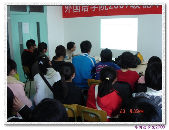 3月23日,外国语学院2007级在学院活动室召开了学生会、团总支、实践会2007级全体学生干部大会,会议由外国语学院2007级辅导员张磊老师主持。