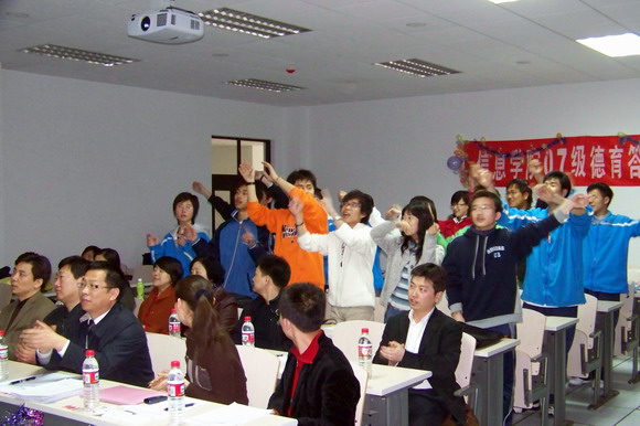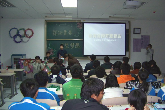 2008年3月29日,招生就业工作处党支部全体成员在支部书记郝志强的带领下,到良乡校区参加2007级信息工程一班(01510701班)德育答辩开题报告会。