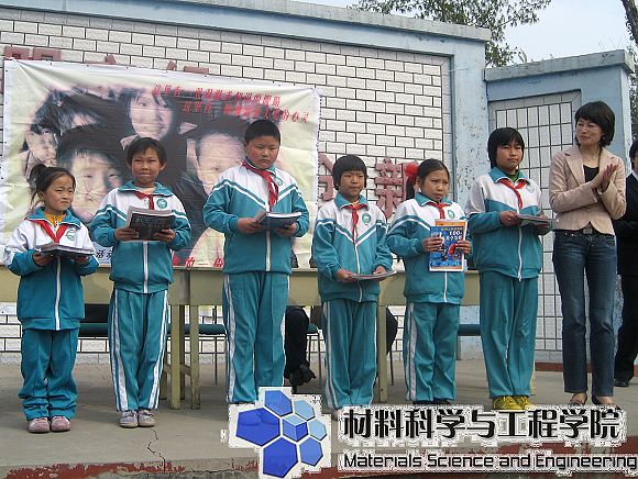 材料学院副书记副院长韩笑为西营小学六位品学兼优的"学习之星"颁发了奖状和奖品,鼓励他们再接再厉。