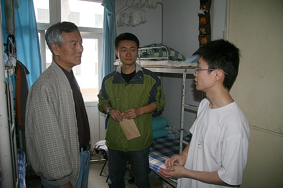 5月15日,学院分党委书记张英与学院学生工作组徐贵宝、徐彬、姚逍老师一起,带着学院的慰问与关怀来到中关村校区在本次地震中家中受灾同学的宿舍,将学院慰问金亲自送到每位灾区同学的手中。宿舍里,张书记详细询问了每位同学目前家中受灾的情况,面对家中受灾严重的同学,张书记鼓励同学们坚定信心,要有勇气面对灾难,坚强地面对灾情,学院永远是同学们坚强的后盾。
