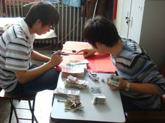 同学代表班级前来捐款,表达大家对灾区人民的心意