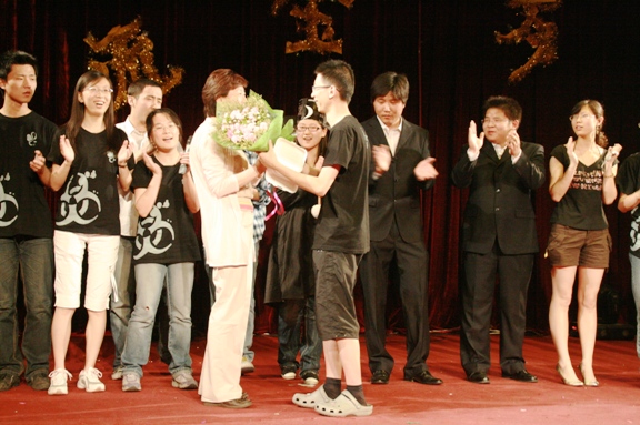 感谢同学,感谢老师,毕业生们十分感谢学院的老师们四年以来对大家的教导与培养,送班主任老师一束鲜花,道一句“老师,您辛苦了”,表达了同学们对老师的感激眷恋之情。04级辅导员胡文老师一曲感人的歌声,把晚会推向了高潮,同学们纷纷走到台上与胡文老师一起合唱,手牵手,纪念一起走过的四年时光。