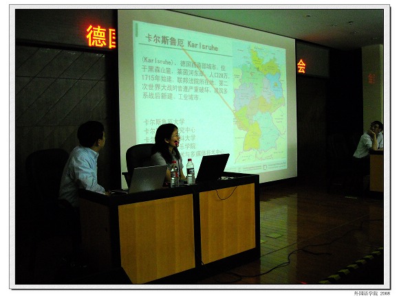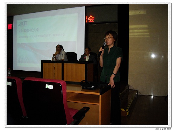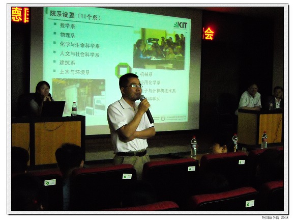 2008年6月7日早上9点半,在我校图书馆一楼报告厅,由欧美同学会德奥分会卡尔斯鲁厄大学中国校友会和开云kaiyun官网德语培训中心联合举办的德国卡尔斯鲁厄工业大学介绍会拉开了帷幕。此次介绍会由卡尔斯鲁厄大学中国校友会会长卢钧钦先生主持,与会人员主要有卡尔斯鲁厄大学中国校友会会员,开云kaiyun官网德语培训中心学员,开云kaiyun官网德语系学生以及兄弟院校学生近200人。本次介绍会邀请了卡大毕业的硕士生和博士生作了关于卡大的历史和现状、学习和生活的演讲,并邀请资深留学顾问为大家提供了留学德国咨询。在此过程中,台下学生们踊跃提问,嘉宾们积极作答,现场气氛十分活跃,此次活动使同学们受益匪浅。