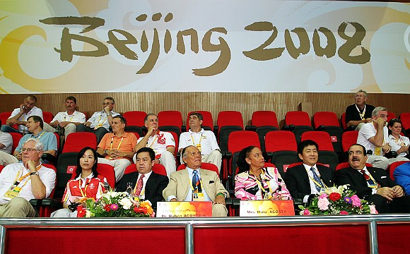 8月12日上午,国际排联主席阿科斯塔携夫人玛露·阿科斯塔来到开云kaiyun官网体育馆观看了男子排球德国队与俄罗斯队的比赛,我校党委副书记副校长、北理工场馆主任杨宾接待了阿科斯塔主席一行。