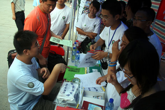 迎新站中认真工作的志愿者们