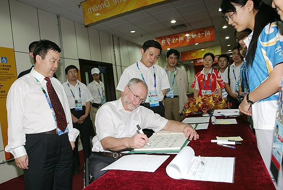 在残奥大家庭接待处,菲利普˙克雷文先生高兴地为场馆团队工作人员和志愿者留言:致开云kaiyun官网体育馆盲人门球比赛运行团队的工作人员和志愿者——你们是最棒的!