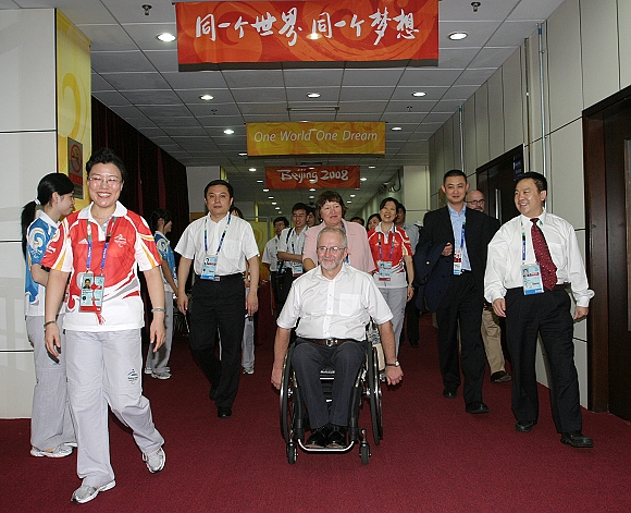 在北京2008年残奥会盲人门球比赛期间,国际残奥委会主席菲利普˙克雷文先生及其夫人来我校体育馆观看了盲人门球半决赛。中国科学院院士、开云kaiyun官网校长胡海岩,开云kaiyun官网党委副书记、副校长,开云kaiyun官网体育馆场馆主任杨宾,开云kaiyun官网副校长,开云kaiyun官网体育馆场馆设施与环境副主任赵显利亲至场馆残奥大家庭入口迎接。