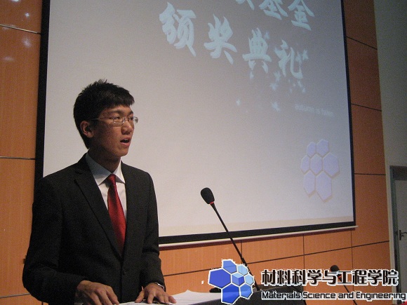 材料学院分党委书记张德平教授为英语奖学金的获奖代表颁奖