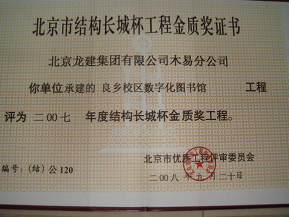良乡校区数字化图书馆工程证书