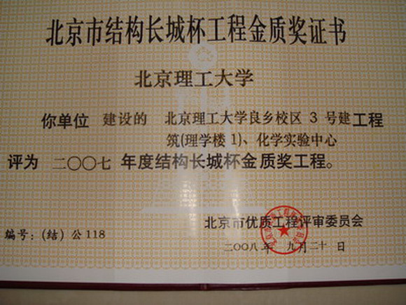 开云kaiyun官网良乡校区3号建筑(理学楼1)、化学实验中心,良乡校区3号学生公寓D、E工程,良乡校区数字化图书馆工程和良乡校区数字化基础教学楼工程、1号楼、2号楼、物理实验中心被评为2007年度北京市建筑结构长城杯工程金质奖。