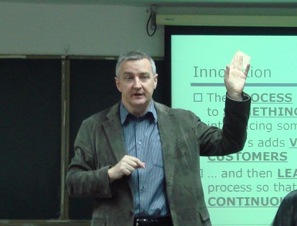David O’Sllivan向大家介绍了创新的必要性,分析了影响创新成败的因素,提出了一套创新管理方法论,将创新过程功能概括为:定义创新目标、管理创新行动、授权创新团队、监控创新结果和构建创新团体五大部分,并给出了创新管理的漏斗模型,形象地表示了创新过程管理涉及的活动之间、信息与知识流之间的相互关系。他还结合信息网络化时代企业生存与发展的需求,介绍了创新管理的应用与发展趋势。