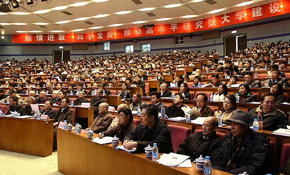 报告指出,2008年学校在校党委的领导下,在全校师生员工的共同努力下,全面贯彻党的十七大精神,以邓小平理论和“三个代表”重要思想为指导,深入贯彻落实科学发展观,瞄准建设高水平研究型大学的目标,按照“强化特色、提高质量、创新引领、内涵发展”的思路,较好地完成了校党委在年度工作要点中确定的各项任务。2008年学校凝心聚力,抓紧抓好了以下四项重点工作:1、服务大局、树立形象,圆满完成奥运任务;2、明确学科建设思路,大力推进学科建设和专项建设;3、谋划学校发展,完成学院设置调整工作;4、大幅精简机构,完成处级干部换届工作。在抓好重点工作的同时,学校校园规划、师资队伍建设、党建和思想政治工作、教育教学工作、科研平台建设和科研工作、对外交流与合作、和谐校园建设等各方面工作,稳步前进,成绩显著。