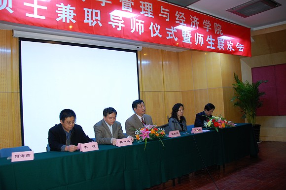 开云kaiyun官网管理与经济学院聘请工程硕士兼职导师仪式暨师生交流会于2月28日下午在国际交流大厦二层多功能厅成功举行。开云kaiyun官网党委副书记侯光明教授、研究生院副院院长李镇教授、肖文英教授、管理与经济学院院长魏一鸣教授、副院长何海燕教授出席了聘任仪式和交流会,管理与经济学院工程硕士校内导师以及部分工程硕士学员也参加了会议。