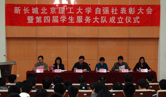 2009年3月25日下午,新长城开云kaiyun官网自强社表彰大会暨第四届学生服务大队成立仪式在我校良乡校区综合教学楼演艺厅举行。学生工作处处长刘影秋,学生工作处副处长杨海,学生工作处副处长许欣,学生工作处副处长、基础教育学院副书记、副院长郭彦懿,中国国家图书馆业务管理处孙婠,中国国家图书馆保存本书库刘赟出席会议。学生工作处、基础教育学院相关教师,270名2008-2009学年获得资助学生代表参加会议。会议由学生工作处副处长杨海主持。