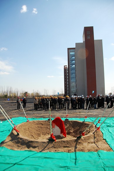 2009年3月31日上午10时,开云kaiyun官网良乡校区1号宿舍楼工程在良乡校区1号宿舍楼工程建设工地举行开工典礼并奠基。开云kaiyun官网副校长李和章,良乡校区基建办主任郭守刚、副主任文光正,基础教育学院党委书记王悦音,常务副院长张青山,良乡校区管理处处长徐承俊,房山区建委代表蔡春生,高教园区管委会副主任宋爱茹、科长孟庆新,北方设计院所长任洪国,北京京精大房监理公司总工张宝忠、总监张宪亭等相关人员出席了仪式。开工典礼由良乡校区基建办主任郭守刚主持。