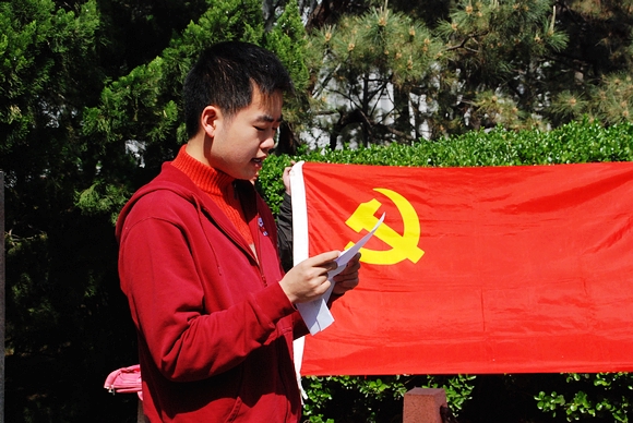 大会第二项:由支部宣传委员宋佳益代表支部成员向活动致词,并向刚刚成为预备党员的各位同学们表示祝贺。