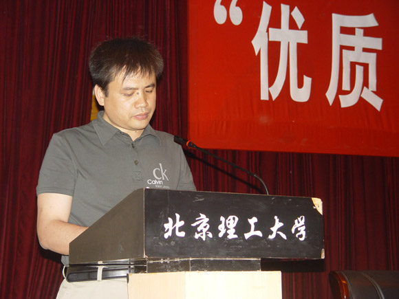 学校党委副书记、副校长杨宾同志在会上做了重要讲话。首先,他对我校膳食工作给与了充分肯定,他说北理工膳食在过去的许多年里取得了很好的成绩,不仅得到了广大师生员工的认可,同时也得到了兄弟院校的赞誉,这是广大膳食员工共同努力的结果。特别是在奥运期间,北理工膳食得到了奥组委的高度评价。同时杨书记也指出了餐饮工作还存在着一些问题及差距,要让全体师生员工满意,还有许多工作要做。膳食是后勤系统中的核心,是师生员工接触最多的窗口单位,餐饮服务质量直接影响着后勤形象,希望通过这次活动能够切实提高餐饮服务工作的水平、质量。他对全体餐饮员工提出三点希望,一要以积极的态度自信地投入工作;二要有责任心,以主人翁的精神,尽职尽责尽心地去做好工作;三要有创新精神,要适当调整菜谱、翻新花样品种,将餐饮工作做精、做活。