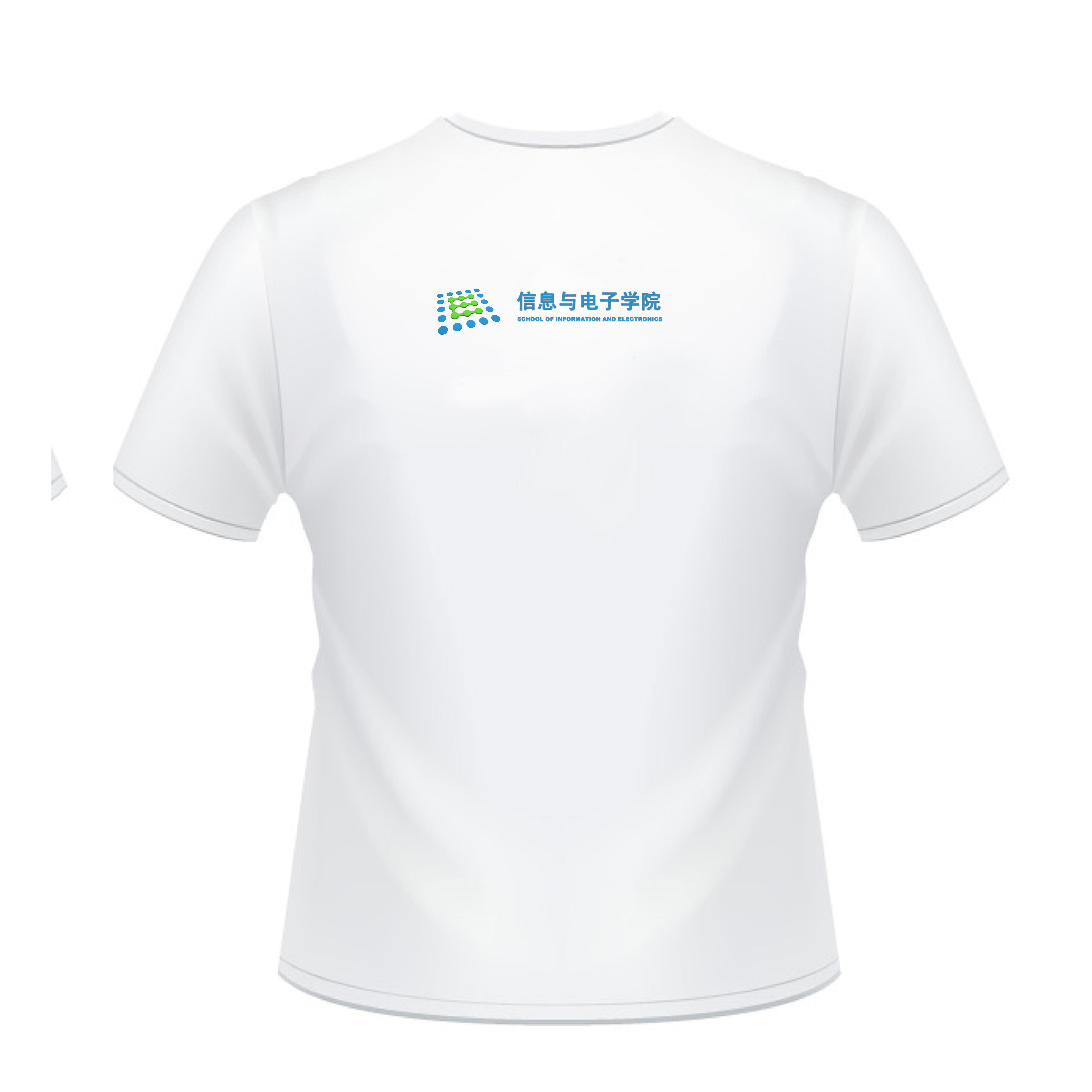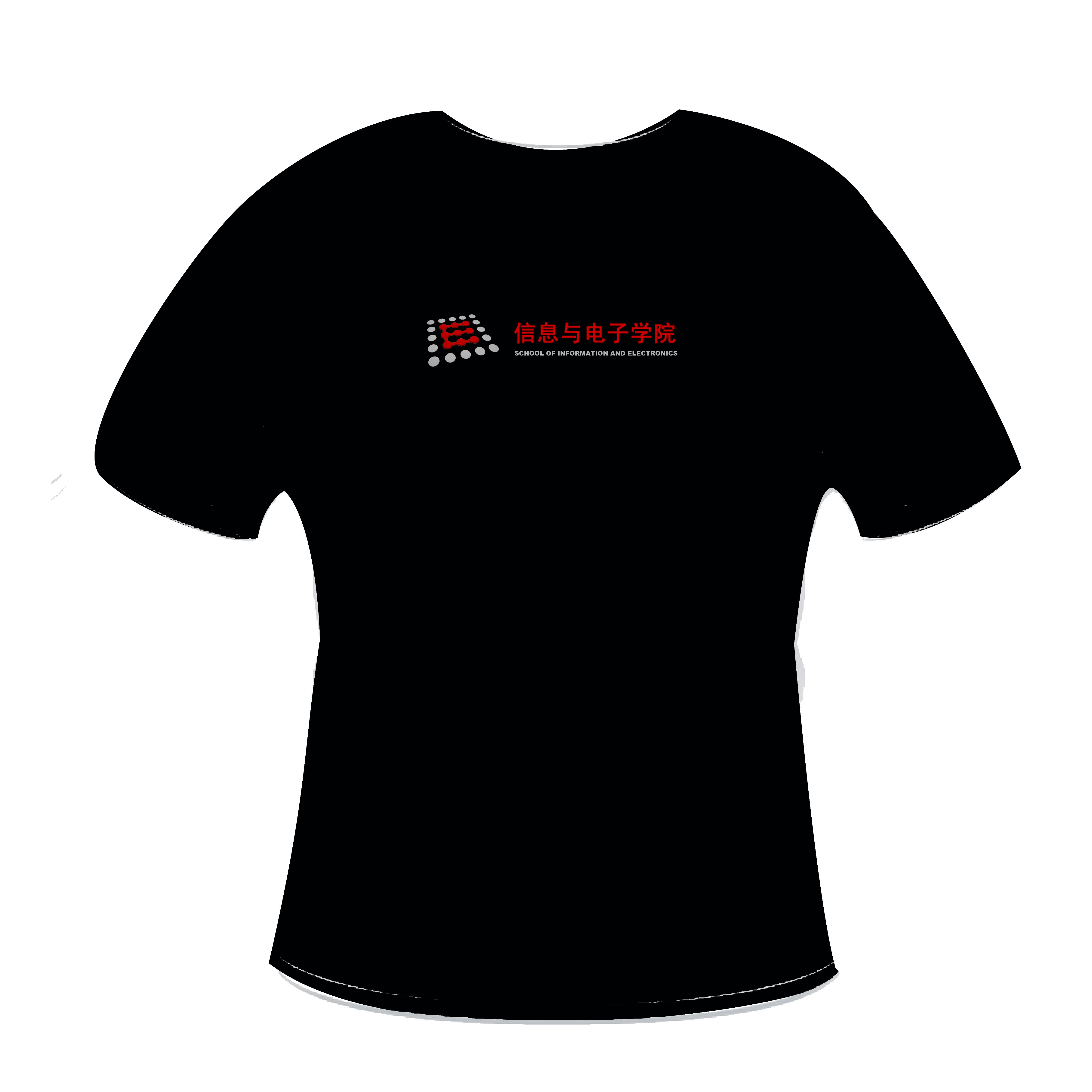 毕业文化衫的主体图案是两个重叠的字母“E”,象征着信息与电子学院。图案由一系列不同表情的、带着学士帽的头像组成,形象可爱。两个表示性别的符号更彰显出青春的活力,简洁大方,动感十足。毕业文化衫的设计充分考虑了同学们的不同喜好,选择了黑、白两种颜色,白色凸显活力,黑色体现沉稳。黑白两种颜色的搭配在整体上代表了信息与电子学院蓬勃向上的精神风貌。