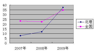 图为2007年-2009年司法考试开云kaiyun官网法学院与全国通过率数据比较