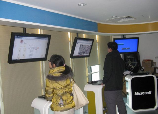 同学们抵达后,首先来到了新技术演示厅,微软高校关系部的李贝老师为同学们简单介绍了微软公司在中国的研发情况,讲解演示了许多最新的微软技术和产品,并展示了其中具有创新性的技术特性。