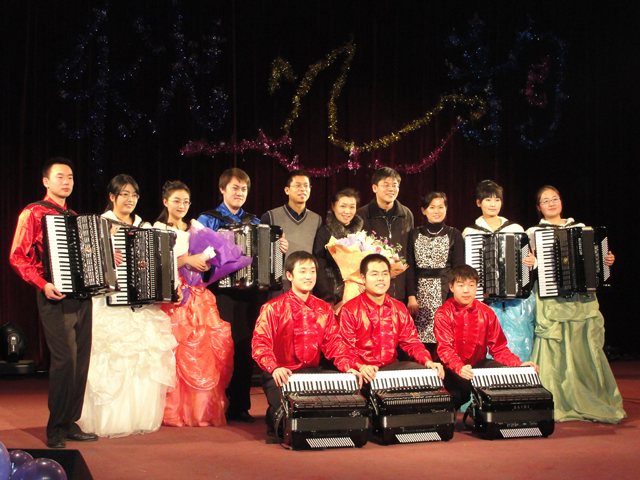 在我校大学生艺术团手风琴团中有部分大四的学生即将离开学校,演出当晚,他们中许多学生的父母也来到了演出现场,校团委书记徐强在开幕致词中特别对我校即将毕业学生的家长表示了感谢。