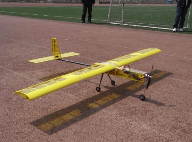 11点30分,飞机准备完毕,随着发动机强劲有力的声音,飞天雄鹰离地升空。该机是09年全国航模锦标赛载重比赛的参赛飞机,由08级队员在寒假集训期间总装完成。此次试飞是对寒假工作成果的检验。之后这架飞机将供08、09级队员练习使用。