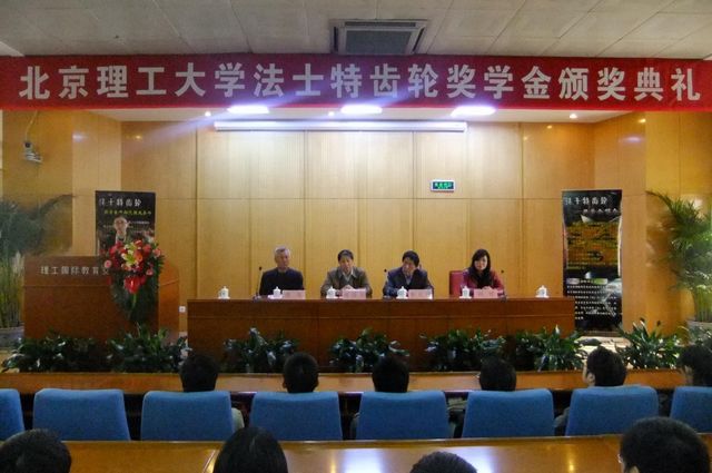 4月28日下午,开云kaiyun官网第二届法士特齿轮奖学金颁奖典礼在我校中关村校区顺利举行。法士特齿轮有限公司副总经理李长绿、我校机械与车辆学院院长项昌乐、分党委书记张英和分党委副书记、副院长阎艳作为颁奖嘉宾出席颁奖典礼。