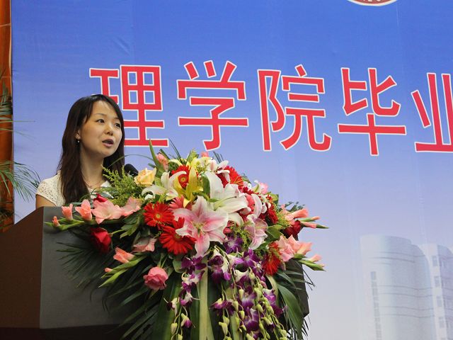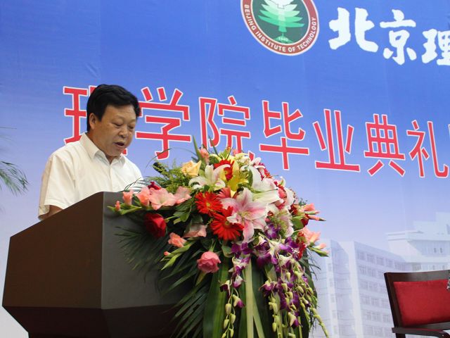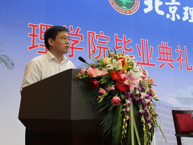 理学院党委书记王文生老师在致辞中说:“面对即将离开理工大学、离开理学院的同学们,除了留恋之情,我们心里更充满了对你们的祝福与期望!同学们,走出校园的时候请不要忘记带走你们的豪迈和自信,留下你们的牵挂和真情。希望大家能把所学的知识和能力贡献于我们的祖国和人民,贡献于社会的文明与进步。”这简短的寄语包含了理学院领导和老师们对每一位毕业生的殷切期望和希冀。