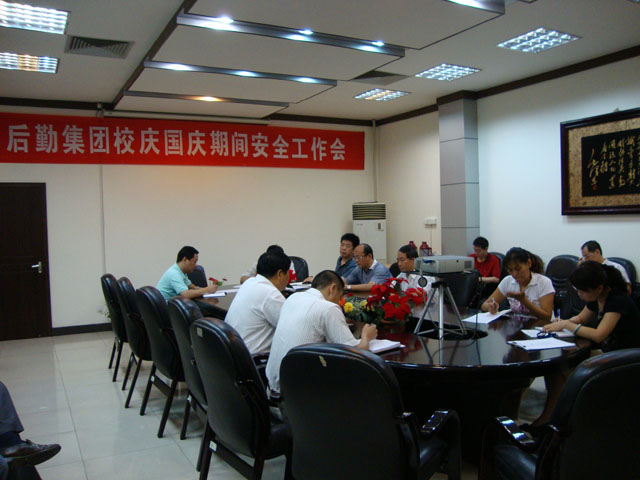 2010年9月6日上午,后勤集团在餐饮中心会议室召开了校庆、国庆期间安全工作会。集团总经理李晋平,副总经理韩宁夫、宋希博、魏东,及各中心主任、各中心安全责任人参加了会议。会议由韩宁夫副总经理主持。