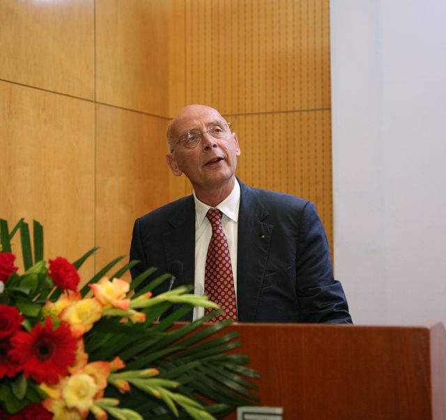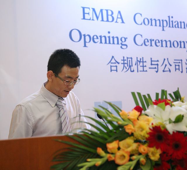 教师代表德国康斯坦茨应用科学大学Josef Wieland教授发言。他告诉与会学员,“合规性与公司治理”项目是培养具有最高职业道德和娴熟国际商业活动运作规则的高级人才,面对跨国公司合作的全球化,公司需要规范企业和经理人员行为的全球标准,公司治理及合规EMBA项目将有利于这方面的发展。我们学校将进一步加大合作力度,发挥教育资源整合的优势,为促进跨国公司的本土化,进一步提升公司全球的竞争力,为企业发展和EMBA培训事业做出新的成绩。