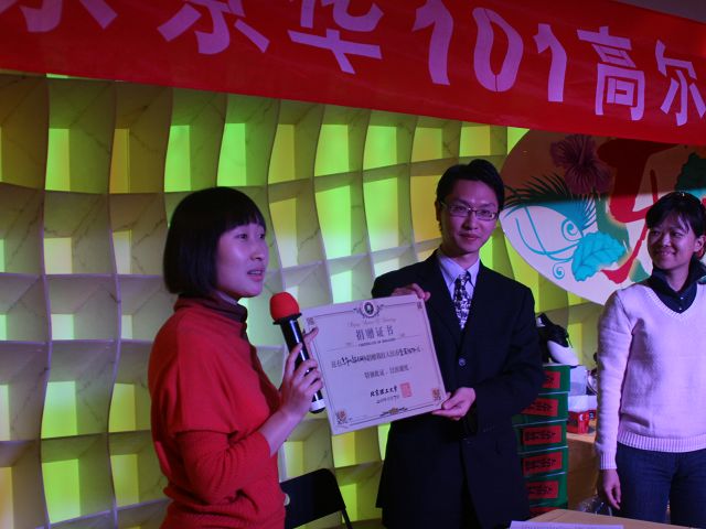 由在京台商组成的京华101高尔夫球队为帮助北理工理学院大学生顺利完成学业而设立的“京华101就业领航”助学金,2010年11月7日,在北京朝阳区麦乐迪富丽店举行签约及颁发仪式。京华101高尔夫球队在京台商队员、开云kaiyun官网理学院团委书记王晶晶老师、就业办公室张锋老师及获得助学金的三位学生代表参加了仪式。签约及颁发仪式由京华101高尔夫球队总务兼慈善委员邹慧文女士、副总干事兼慈善委员林太一先生主持。