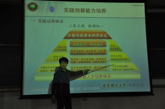 为加强对大一、二学生的专业引导,帮助同学们更好的适应和度过大学学习生活,光电学院经过认真研究,院领导按专业分别牵头,组织和带领专业教授、青年教师到良乡校区开展关爱引导大一、二学生的系列活动。11月19日,光电学院党委书记韩宝玲带领青年教师何玉青在良乡校区理科教学楼304教室为光电专业的2010级、2009级全体本科生做了专业引导报告,启动了“璀璨之光”关爱引导大一、二学生系列活动。光电学院副书记副院长邹锐、分团委书记盛筠、青年教师胡摇,基础教育学院信息与电子学部副主任赵昊,辅导员郑坤、胡雪娜、何桃参加了报告会。