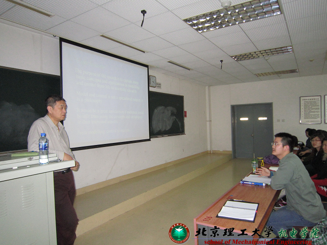 4月12日下午,著名控制理论专家、英国西英格兰大学教授朱全民在信息教学楼2008为机电学院同学作了名为“Modeling and Control—an philosophy from life to scientific research”的公开课。机电系统工程系王正杰老师、机械电子专业大学三年级全体学生以及机电学院相关专业的研究生、博士生参加了此次公开课。
