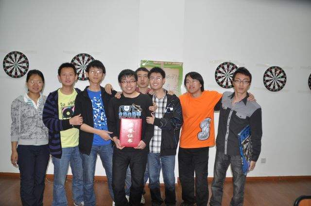 2011年5月13日上午11:30,游戏青春——“一羽中的”飞镖大赛,在热闹欢腾的气氛中开幕。参与此次大赛的同学有近百余人,其中既有以班级为单位参与的同学,还有以个人身份报名参加的同学。活动现场共分为两块活动区域:一块为比赛区域,可容纳6名同学同时进行比赛;另一块为练习区,供同学们练习和娱乐。整个活动中大家有备而来,尽兴而归,让同学们充分享受飞镖项目的乐趣,同时还展示了班集体的风采和个人的魅力。