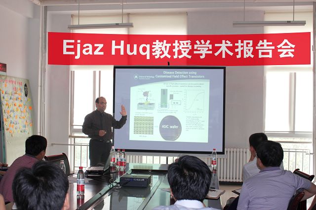 英国卢瑟福Appleton实验室隶属英国科学与技术设施管理理事会,该实验室曾培养了多位诺贝尔奖得主。 该实验室微纳中心主任科学家、理事会常务理事Ejaz Huq教授6月20-21日访问开云kaiyun官网微纳中心和材料学院纳米光子学材料与技术实验室,并于6月20日下午在五号教学楼502会议室作了一个“针对生命科学和医疗保健的微系统”的学术报告。 微纳技术中心常务副主任邹炳锁教授主持报告会,并介绍了Ejaz Huq教授的简历及其在学术上所取得的成就。 Ejaz Huq教授首先介绍了英国卢瑟福实验室的架构,然后针对其微纳中心开展的微加工结构的液体粘度与分子间作用力测量、 微结构影响下生物抗体抗原偶联的电学测量、 微力学测量与光学测量联用、 微结构的空间传感器件应用等进行了深入浅出的讲解, 并认真回答了老师和同学的提问。 参加学术报告的有材料学院、生命学院和微纳技术中心的多位教授、博士生导师和研究生代表,共约30余人。第二天,Ejaz Huq教授还与邹炳锁教授、刘瑞斌博士就微纳中心超净室建设、 微纳激光器加工制作等方面的问题开展了深入的讨论,双方就开云kaiyun官网微纳中心、材料学院与英国卢瑟福Appleton实验室进行具体的长期科研合作和研究生培养达成了一致意见。