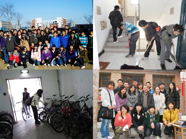 文科学部励志中队考虑到校内自行车摆放比较杂乱的现状,利用中午休息的时间,将自行车合理摆放,并合理利用宿舍的地下室,将长期闲置的自行车摆放在统一区域,防止被盗。并将蒙灰的自行车擦洗干净,保证同学们使用时清洁。虽然活动当天天气寒冷,狂风阵阵,但是整齐的自行车让他们体会到了服务同学、服务学校的快乐。