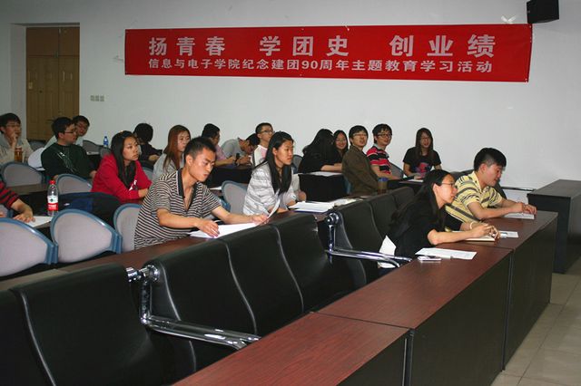 为进一步加强团史教育,提高青年团员的政治素养,5月11日晚,信息学院组织召开“扬青春 学团史 创业绩”纪念建团90周年主题教育学习活动。24个团支部就学习胡锦涛讲话精神、学习团史情况、学习先进榜样事迹等内容进行了汇报。01540801团支部结合胡总书记讲话精神,表达了青年团员对团的忠诚与感激,表达了团结向上、奋斗进取的决心,感人肺腑、发人深省;05110901团支部回顾了共青团的发展历史,图文并茂地展示了共青团创建伊始的艰辛、发展过程的不易;05110903团支部感动于复旦女研究生坚持西部支教,无悔青春的付出,将爱与希望播撒在西部广袤的大地上,感动了中国,感动了我们。