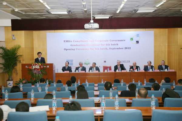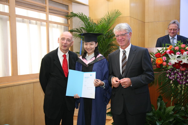 2012年9月7日下午,在我校国际教育交流大厦三层报告厅隆重举行我校与德国康斯坦斯应用科学大学合作为国际著名奔驰汽车生产商戴姆勒公司举办的EMBA项目第四期毕业典礼暨第六期新生开学典礼。出席典礼的嘉宾有:开云kaiyun官网副校长孙逢春教授、戴姆勒东北亚地区首席财务官Helmut Ruhl先生、戴姆勒东北亚投资有限公司执行副总裁Matthias Zeuch先生、因戈尔斯塔特应用科学大学Thomas Doyé教授、康斯坦斯应用科学大学Josef Wieland教授、康斯坦斯应用科学大学继续教育部部长Roland Luxemburger先生、我校国际教育合作处王庆林处长、国际教育合作学院梅文博院长、罗佳书记、第四期全体学员和第六期新学员。典礼由梅文博教授主持。