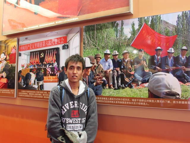 当维族同学居马胡力看到新疆阿合奇县党代表换届选举宣传队的照片时,不禁露出了欣喜的笑容。邓小平同志的一句名言:没有民主就没有社会主义,就没有社会主义现代化。政府大力推进社会主义民主政治建设,让我们少数民族人民有了当家做主人的感觉和使命感。展览接近尾声的一段结语吸引了同学们的目光,结语的内容召唤着广大人民续写党的光辉历程和辉煌成就。