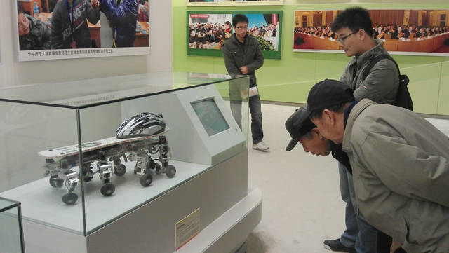 离退休同志们还反复观看了此次展览中展出的由我校特种机器人创新团队研制的“新型节肢机器人”,在展台前大家饶有兴致的反复观看设计精巧的实物模型和精彩绝伦的视频展示,为我校青年学子的创新能力感到骄傲,为学校培养出高水平的人才感到万分喜悦。