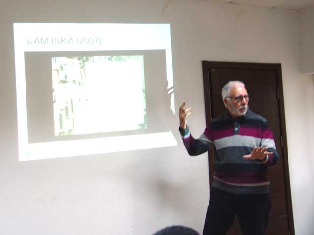 本次学术交流讲座由交通运输工程系高利教授主持,高利教授首先向Michel教授及各位与会人员展示了今年10月31日到11月1日在内蒙古赤峰市举行的第四届中国智能车未来挑战赛的相关视频资料,对目前我国的智能车研究发展以及测评技术做了介绍,Michel教授表示很感兴趣,迫切希望能参观一下本校的参赛车辆。接下来是Michel教授对ITS(Intelligent Transport System智能交通系统)以及Cybercars项目的介绍。