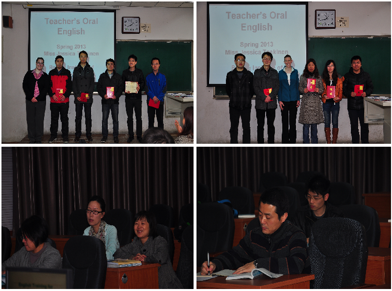 日前,我校新学期教师英语口语培训班与英语高级培训班相继开班。3月12日下午第二十一期教师英语口语培训班在3号教学楼318教室开班。课前进行了简短的颁发证书仪式,主讲教师Jessica与Polly为上学期培训考核合格的教师颁发证书。本学期口语培训课程由外籍教师Jessica主讲。英语口语培训班的开设旨在提高教师英语口语水平,强化英语授课能力和国际学术交流能力,课程采取小班授课的方式,注重课堂参与及互动交流,每周集中授课半天。