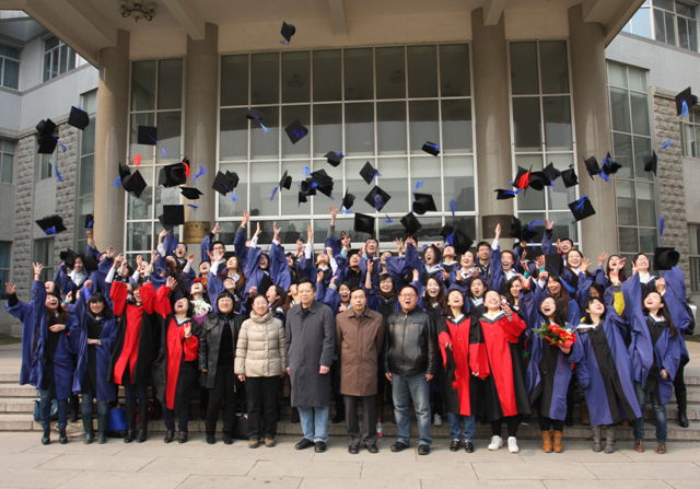 毕业典礼后的学位授予仪式上,学院院长兼学院学位委员会主席胡长文教授为全体毕业生授予了学位,并同每一位毕业生合影留念。