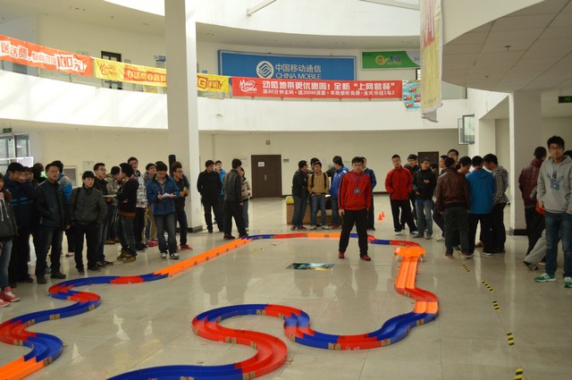 比赛开始,迷你四驱车以肉眼难辨的速度在赛道上飞驰,虽然有不少赛车因为速度太快而冲出了赛道,但这丝毫没有减少观众的热情。每当四驱车呼啸而过,总能引来观众一阵阵的欢呼与惊叹。就连我们的工作人员,也禁不住四驱车的诱惑,与观众围在一起,欣赏着紧张、激情、欢乐的比赛。