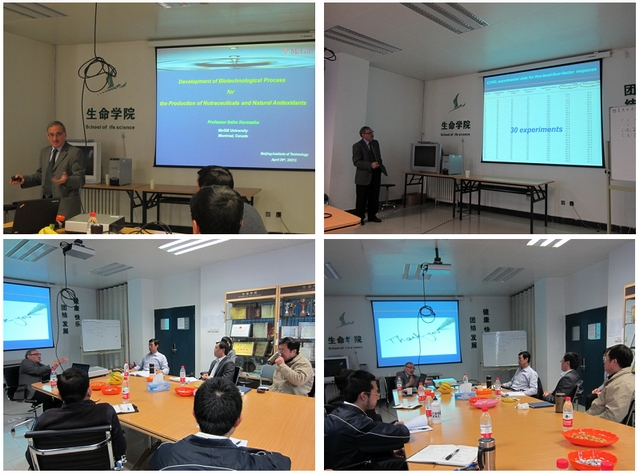 2013年4月26日上午,应生命学院李春教授邀请,加拿大麦吉尔大学食品科学与农业化学系的Selim Kermasha教授为北理工生命学院师生带来了其第二场学术报告,题目为 “Development of iotechnological Process for the Production of Nutraceuticals and Natural Antioxidants”。生命学院教师戴大章副教授、周晓宏博士及部分研究生、本科生参加了报告会, 李春教授主持了这次学术报告会。