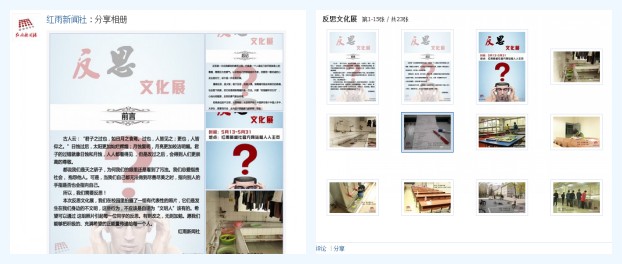 作为共青团系统全媒体平台建设试点单位,信息与电子学院团委及红雨新闻社积极尝试,开拓创新,继“韵味北理摄影网络展”成功举办后,本次“反思文化展”从筹备、宣传、展览等每一步均按照全媒体宣传工作要求严格执行。没有纸质宣传资料,没有实体海报、横幅、喷绘,通过网络宣传、网络展览的形式,将“反思文化展”打造成为符合全媒体宣传工作的品牌活动。同时,本次活动也为学院积累了搭建全媒体工作平台的宝贵经验,为学校全媒体平台建设增添砖瓦。