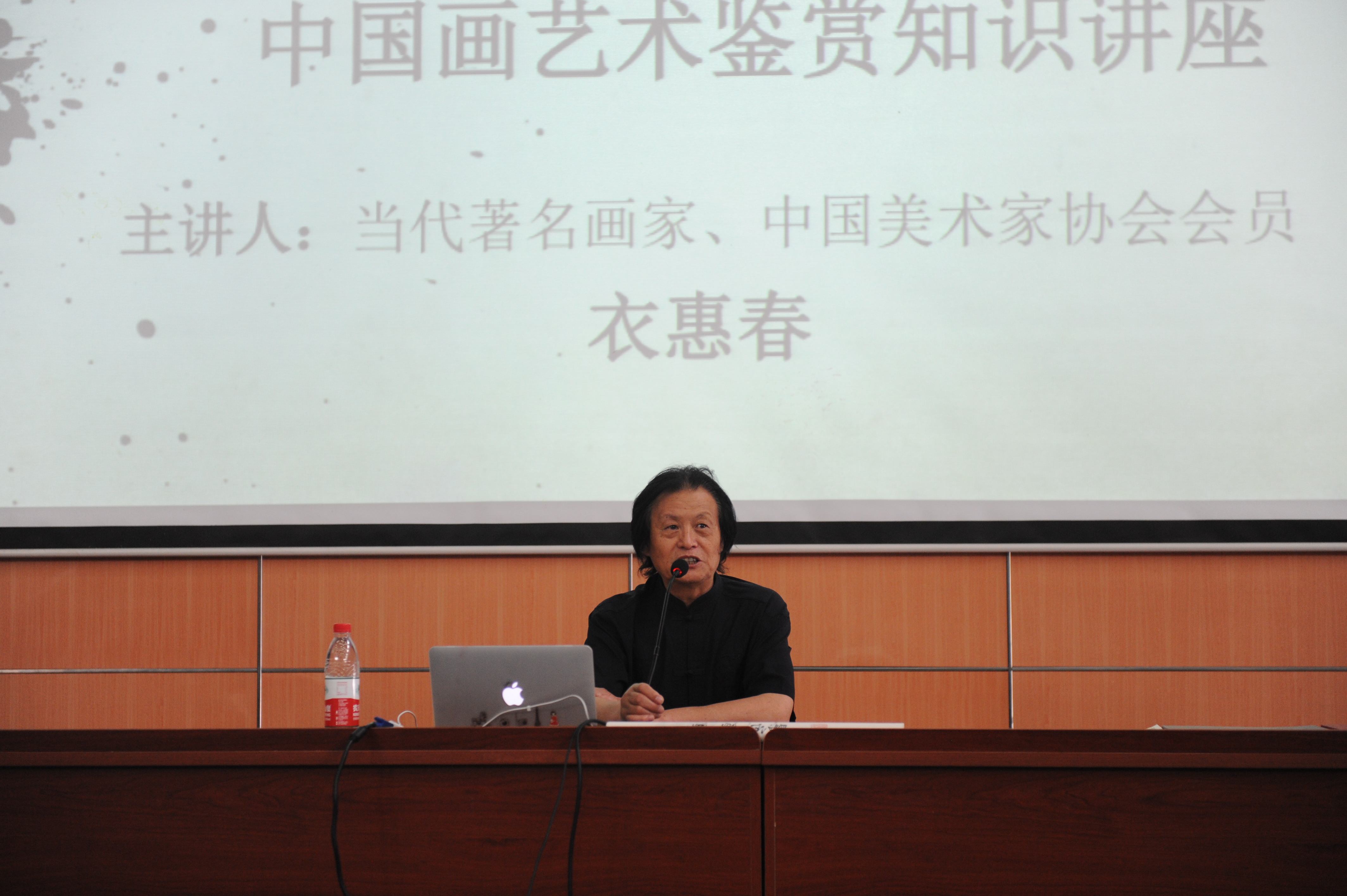 衣惠春先生为师生们带来一场精彩的中国画艺术鉴赏知识讲座,他以法国卢浮宫中的蒙娜丽莎与齐白石、徐悲鸿等名家的画作为例,向同学们对比了中西方画作艺术的不同;他结合自己的作品详细介绍了中国画的精髓所在,强调作画要在“似与不似之间”,掌握好尺度,神形兼备。衣惠春先生还结合自己求学经历、五十余年的书画之路,启迪同学们不仅要品学兼优还要培养兴趣爱好,坚持不懈的努力最终一定有所收获。讲座不仅提升了同学们的书画艺术鉴赏能力,更激励同学们勤奋求学、成长成才。