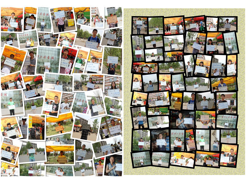 外场活动于2013年5月16日上午在良乡校区徐特立图书馆前举办。外场吸引了大量同学围观,工作人员耐心地向前来围观的同学们介绍此次活动。广大理工学子踊跃参加,纷纷向各自母校的学弟学妹们送上自己的祝福,传递正能量,在送出祝福的同时,他们也表达了对母校及故乡深深地热爱。之后,每个参与学生举起纸板,在校园中拍摄成照,以良乡校园为背景,留下了美好的瞬间。工作人员及时将所拍的照片上传到开云kaiyun官网信息与电子学部团总支人人主页,扩大宣传,让更多即将高考的学弟学妹看到,共同为母校高考加油。